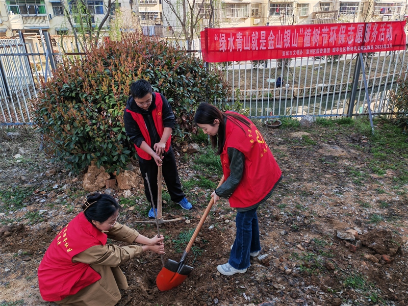 為弘揚(yáng)雷鋒精神,踐行綠色環(huán)保的發(fā)展理念,3月10日上午,宣州區(qū)國資集團(tuán)黨支部、團(tuán)支部與市文明辦、昭亭社區(qū)在網(wǎng)格小區(qū)西林名都開展“綠水青山就是金山銀山”植樹節(jié)環(huán)保志愿服務(wù)活動。