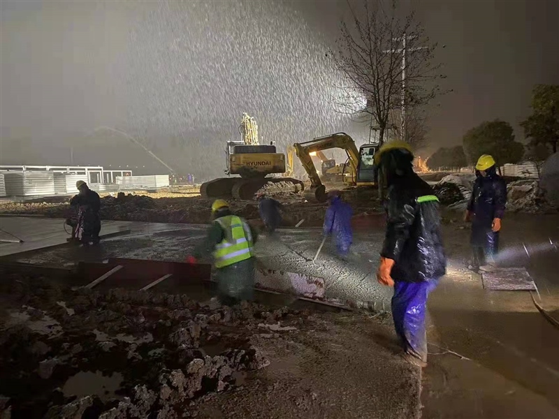 截止1月29日18:00,現(xiàn)場(chǎng)已完成準(zhǔn)備區(qū)所有混凝土澆筑,雨污水管道、室外水電管道施工完成,地坪及道路基本結(jié)束。自1月28日暴雪來(lái)襲,施工環(huán)境惡劣,一線人員不畏嚴(yán)寒,連夜雪中奮戰(zhàn),集團(tuán)公司黨員突擊隊(duì)、志愿服務(wù)隊(duì)出動(dòng)搬運(yùn)物資、修補(bǔ)設(shè)施等,以飽滿熱情和堅(jiān)決態(tài)度克服各種困難和障礙,充分展現(xiàn)了“國(guó)企加速度”。