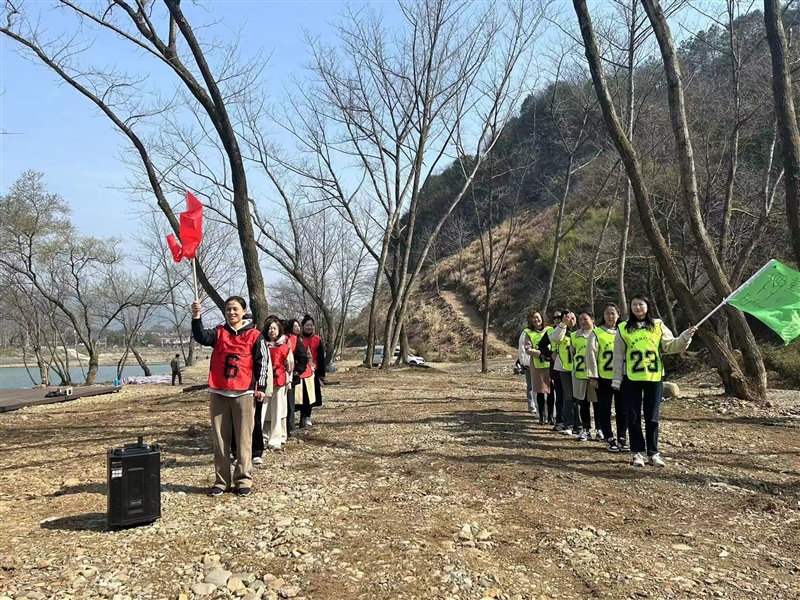 溪口的春日,山青水碧、空氣清新,晨風中掠過的一絲微涼瞬間點燃了“女神”們滾燙的運動熱情!芭瘛眰冊诮坦俚闹敢拢ㄟ^“極限60秒”、“驛站傳書”等互動游戲,在一片歡聲笑語中感受著春日的氣息和蓬勃向上的生機與活力。