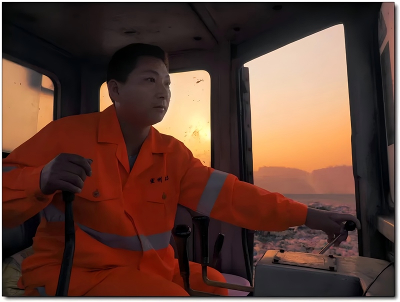 徐開(kāi)鋒臨危受命,在填埋場(chǎng)當(dāng)推土機(jī)駕駛員。每天的工作就是把400多噸的垃圾推平壓實(shí)。每到夏、秋季節(jié),臭氣熏天的垃圾引來(lái)更多的蒼蠅“光顧”,用徐開(kāi)鋒同事的話說(shuō),“遠(yuǎn)看徐開(kāi)鋒就好像穿了一副‘將軍鎧甲',蒼蠅扒在他的臉上、手上、背上……”彼時(shí)的徐開(kāi)鋒已經(jīng)是一名7歲女孩的父親,但為了應(yīng)對(duì)繁重的工作,他每天5點(diǎn)鐘就騎著摩托車(chē)出了門(mén),等到晚上回家時(shí),女兒多半已經(jīng)睡著了!邦I(lǐng)導(dǎo)把我安排到這個(gè)崗位,我就要崗位上做出個(gè)樣!”,正是胸懷這份“執(zhí)拗”,他在填埋場(chǎng)推土機(jī)駕駛員崗位上堅(jiān)持了11年。