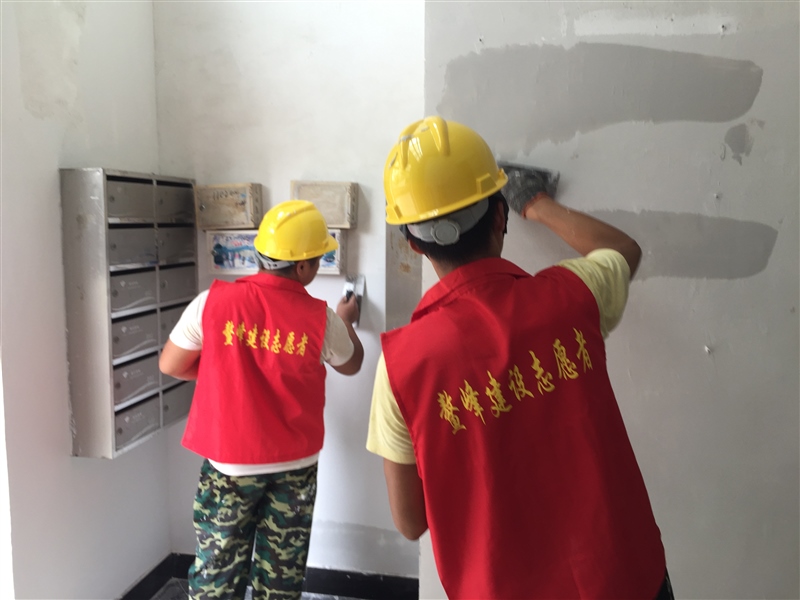 8月26日-8月30日,志愿服務(wù)隊(duì)來到鉆石鑫城小區(qū)開展小區(qū)清潔志愿服務(wù)活動(dòng)。隊(duì)員們對(duì)小區(qū)單元樓道墻面上、信箱上的涂鴉“牛皮癬”廣告進(jìn)行清理,給墻面重新刮膩?zhàn)、刷涂料,為居民營(yíng)造良好的生活環(huán)境。